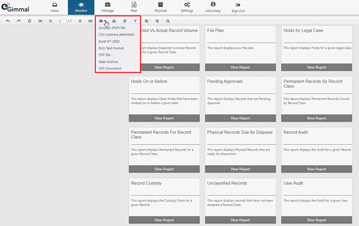 Volume by Record Class and File Type | Displays Record Volume by Record Class and File Type |