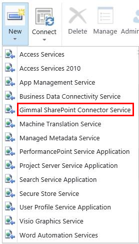 From the New option in the ribbon, choose Gimmal SharePoint Connector Service.