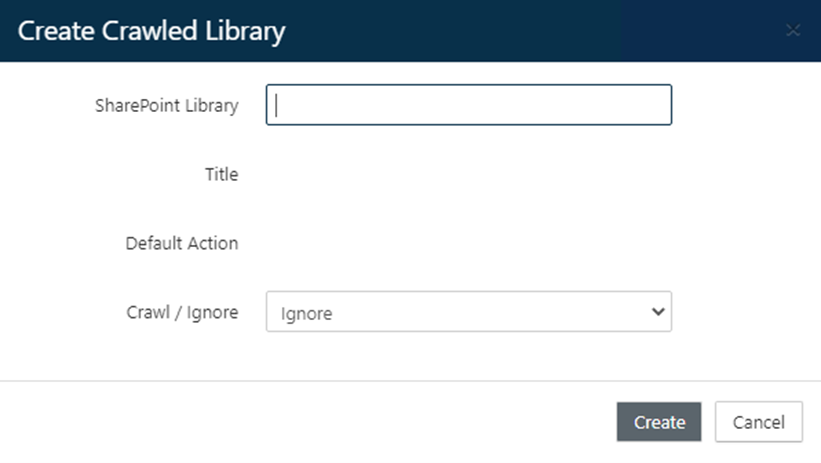 Click the button +Create on the Crawled Library page. The Create Crawled Library dialog opens.